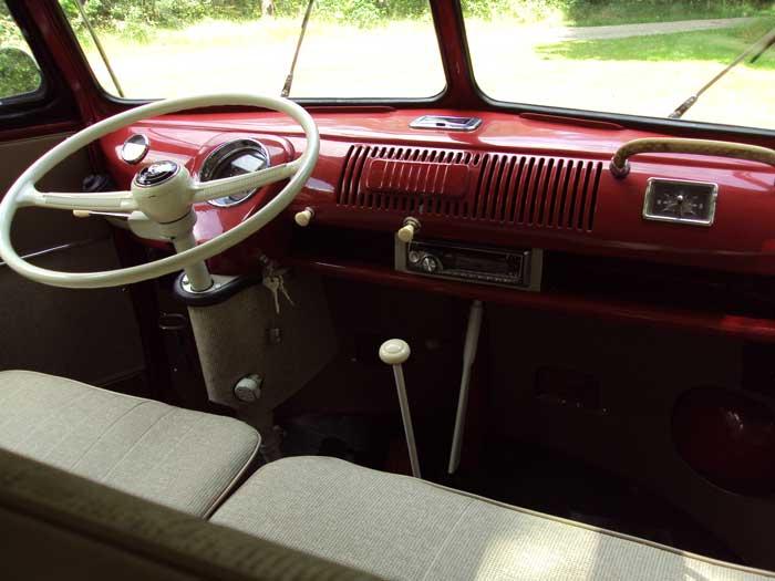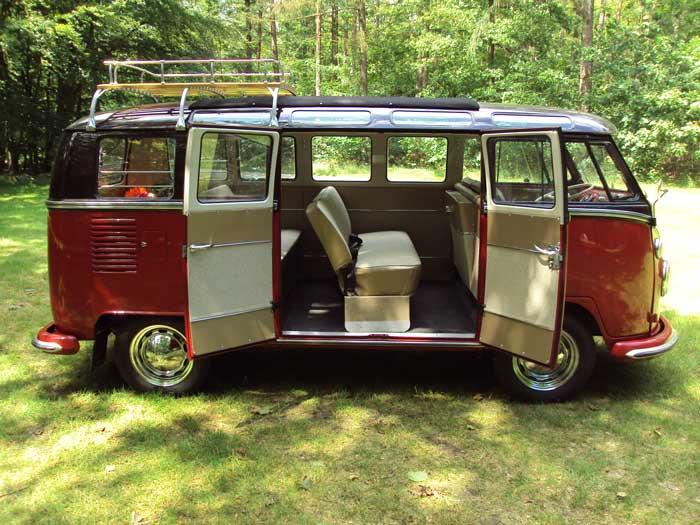 Volkswagen T1 Samba 1967. Volledige restauratie, carrosserie gestraald bodem en wielkasten geschoopeerd. Kleuren robijnrood L456, kastanjebruin L73.Bekleding mesh. platium van TMI. Vouwdak zwart vernieuwd van TMI. Carrosserie geïsoleerd met dempingsplaten. Motor 1600 cc dubbelpoort nieuw, 2000 km gereden. Nieuwe rancho versnellingsbak. Vertragingskasten nieuwe lagers. Trommelremmen leidingen schoenen ed. vernieuwd. Hoofdremcilinder klaar voor evt. schijfremmen. Bedrading nieuw, diverse schakelaars vernieuwd. Deur en raamrubbers alles vernieuwd. Elektrische stuurbekrachtiging van ezpowersteering. Westfalia trekhaak. Kortom gewoon een perfect gerestaureerde Samba bus. Wordt in opdracht van klant verkocht. Bij interesse bel of mail voor meer informatie.