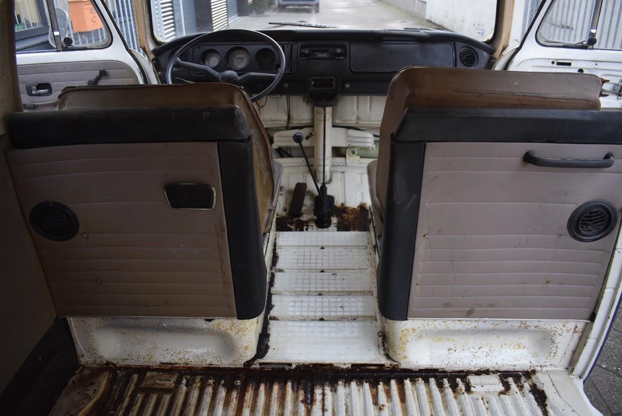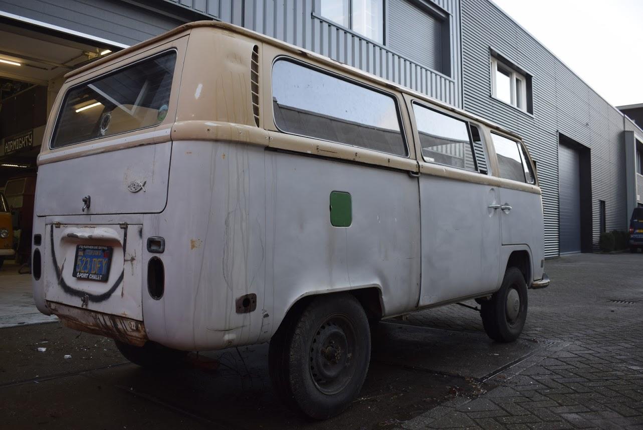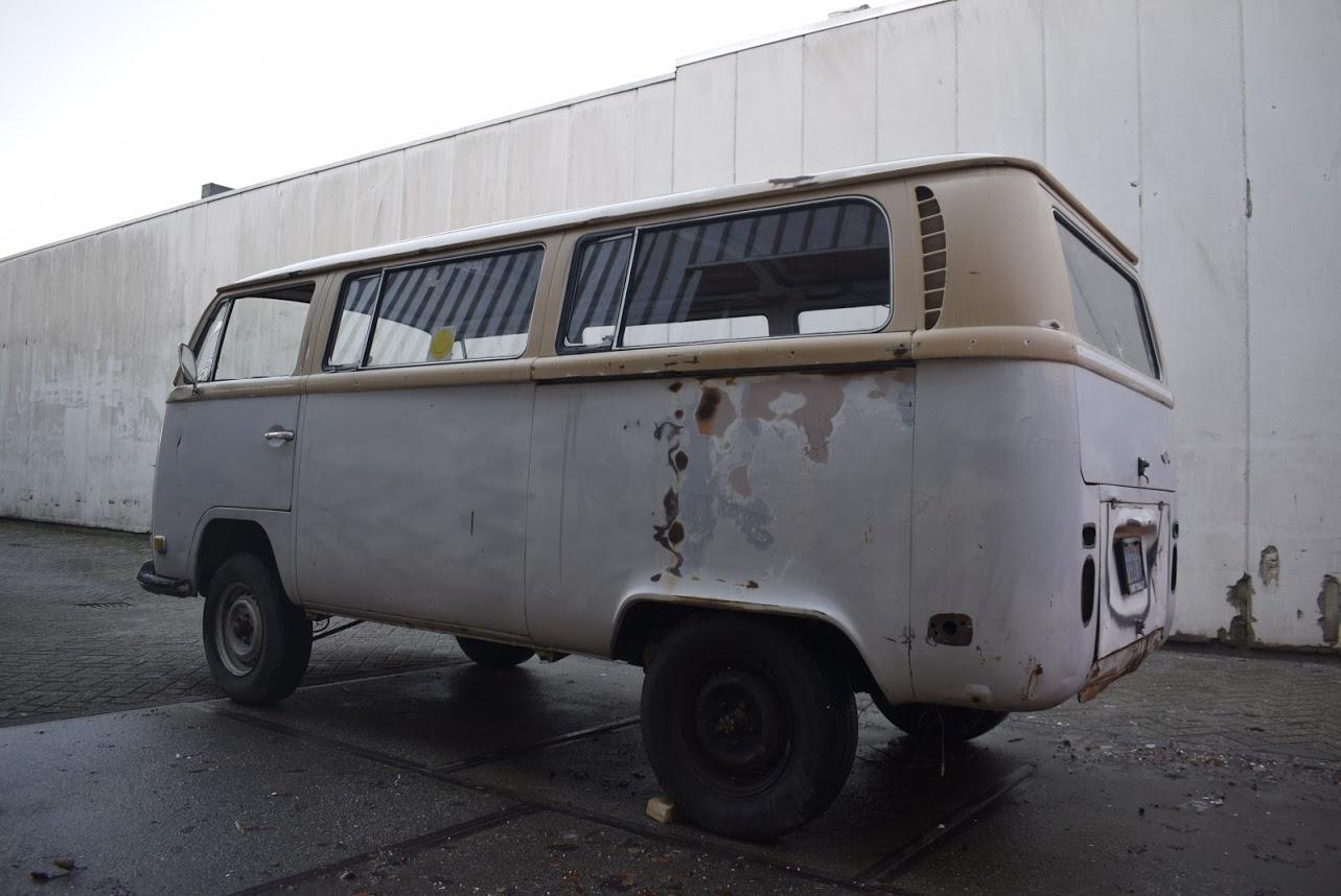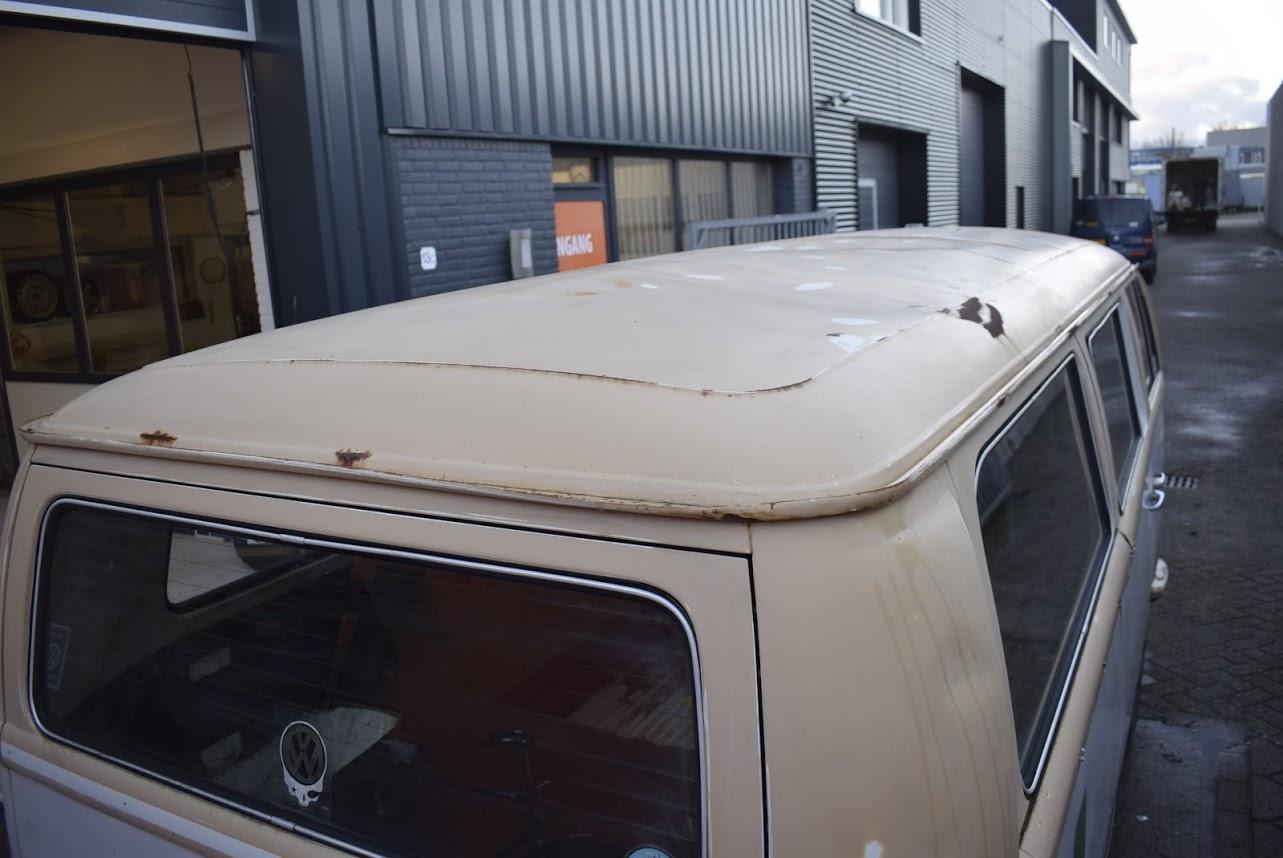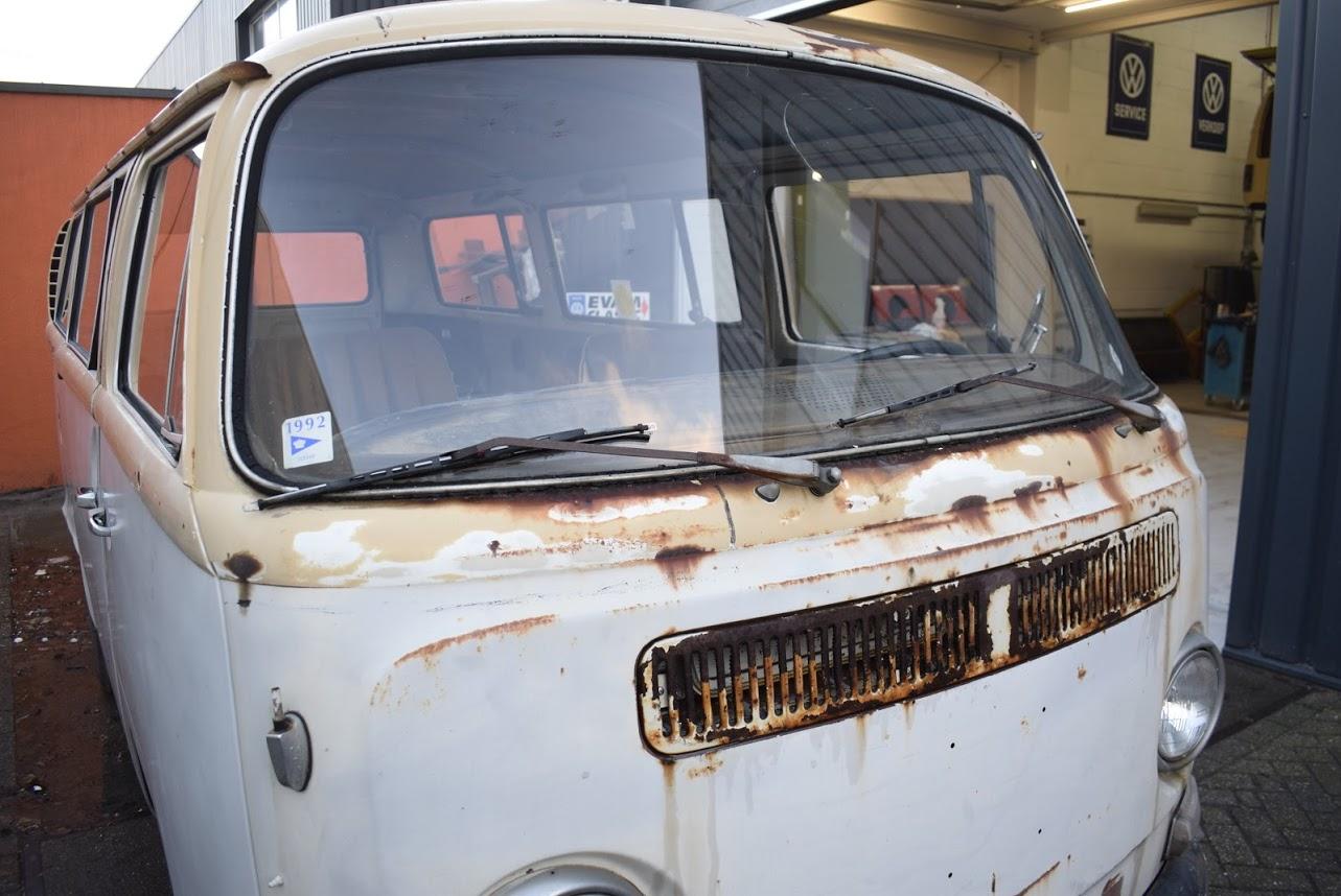 Dit betreft een Volkswagen bus met werk, maar er zit weinig laswerk aan, een klein gaatje in het laadvoer bij de schuifdeur en een paar gaatjes bij de voorste vloer bij de pedalen, zelfs de accu bak is nog hard. Rondom heeft deze bus een paar deuken en in het dak zitten nog een paar deuken. Technisch werk zit er aan de remmen en aan het onderstel. Banden zijn uitgedroogd en moeten vervangen worden.