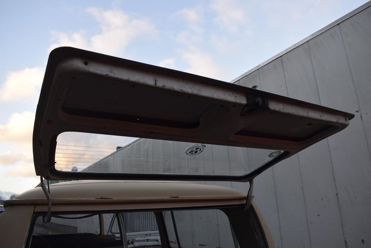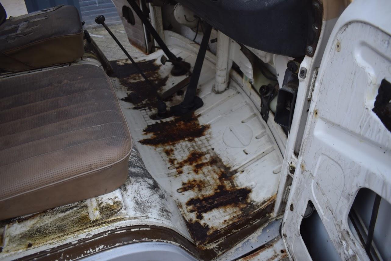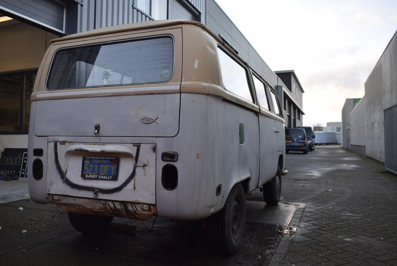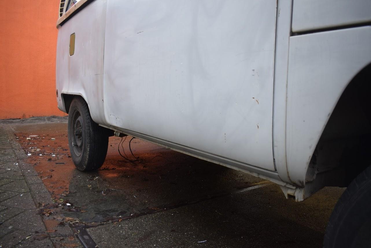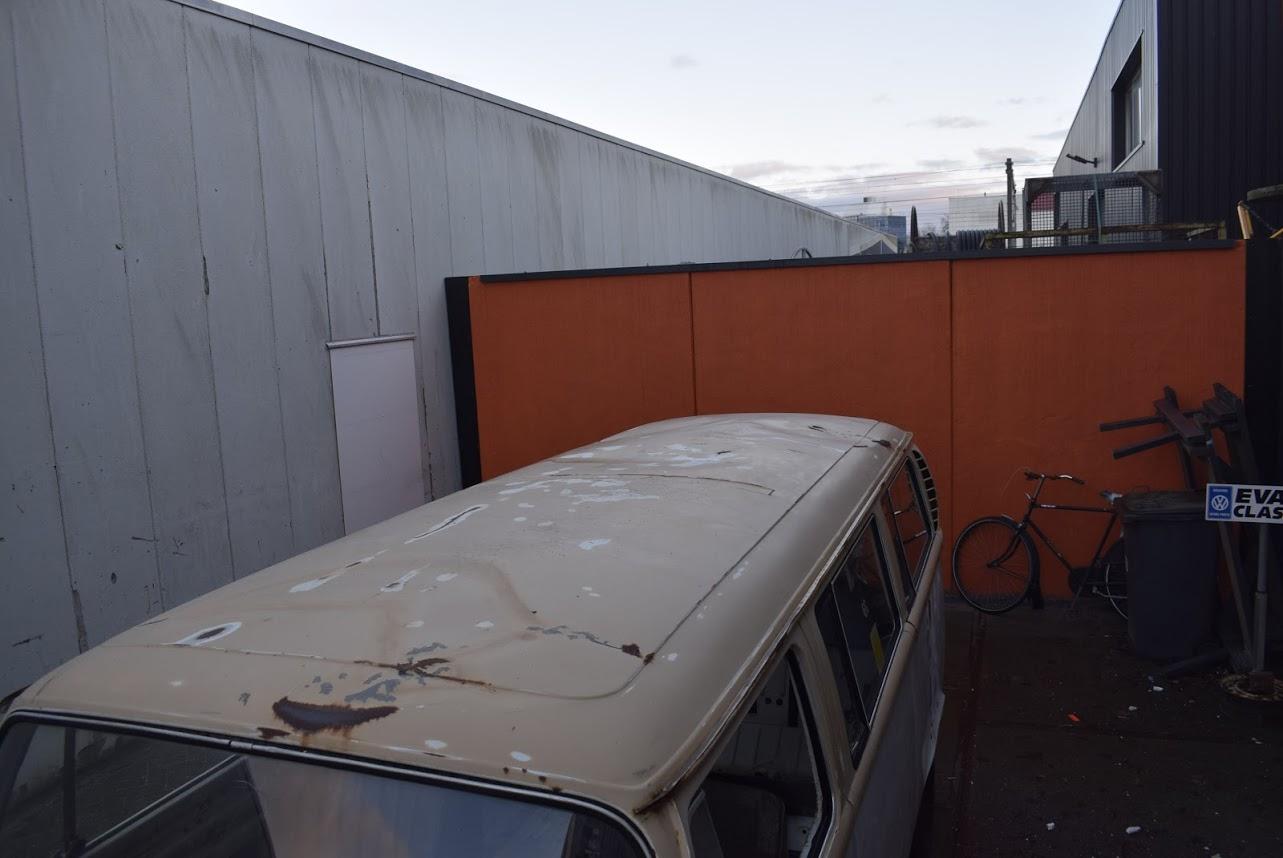 Dit betreft een Volkswagen bus met werk, maar er zit weinig laswerk aan, een klein gaatje in het laadvoer bij de schuifdeur en een paar gaatjes bij de voorste vloer bij de pedalen, zelfs de accu bak is nog hard. Rondom heeft deze bus een paar deuken en in het dak zitten nog een paar deuken. Technisch werk zit er aan de remmen en aan het onderstel. Banden zijn uitgedroogd en moeten vervangen worden.