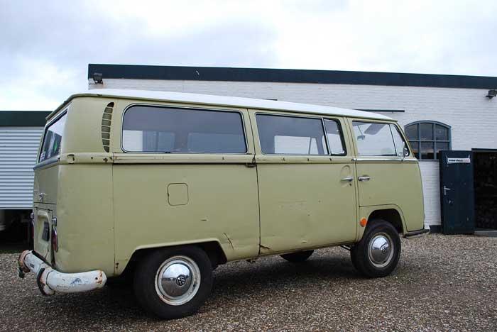 VW DELUXE 1968 1ste lak, speciale kleur yukkon-geel was alleen op aanvraag te bestellen, wit dak, zitplaatsen met zwart skai, voorstoelen zijn opnieuw bekleed zien er geweldig uit, 1.6L motor, sierlijsten rondom, sierlijsten in de raamrubbers, doorloop versie en heel speciaal het 1ste jaar van de Panoramabus 1968. ##### VW DELUXE 1968, 1st paint, special color yukkon-yellow, white roof, seats with black skai interior, new front seats upholstery, 1.6L engine, deluxe moldings, alu window moldings, walk through version, 1ste year of the bay window