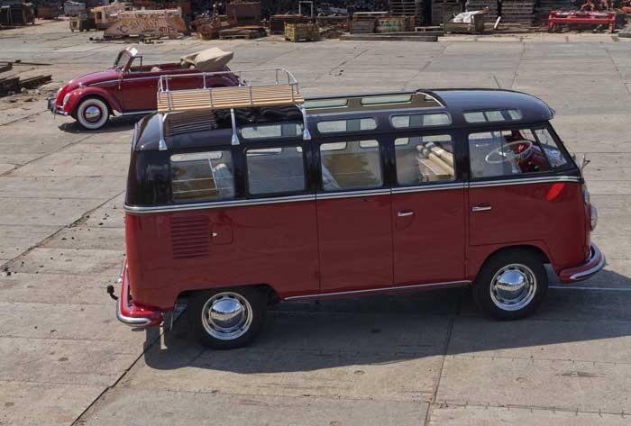 Volkswagen T1 Samba 1967. Volledige restauratie, carrosserie gestraald bodem en wielkasten geschoopeerd. Kleuren robijnrood L456, kastanjebruin L73.Bekleding mesh. platium van TMI. Vouwdak zwart vernieuwd van TMI. Carrosserie geïsoleerd met dempingsplaten. Motor 1600 cc dubbelpoort nieuw, 2000 km gereden. Nieuwe rancho versnellingsbak. Vertragingskasten nieuwe lagers. Trommelremmen leidingen schoenen ed. vernieuwd. Hoofdremcilinder klaar voor evt. schijfremmen. Bedrading nieuw, diverse schakelaars vernieuwd. Deur en raamrubbers alles vernieuwd. Elektrische stuurbekrachtiging van ezpowersteering. Westfalia trekhaak. Kortom gewoon een perfect gerestaureerde Samba bus. Wordt in opdracht van klant verkocht. Bij interesse bel of mail voor meer informatie.