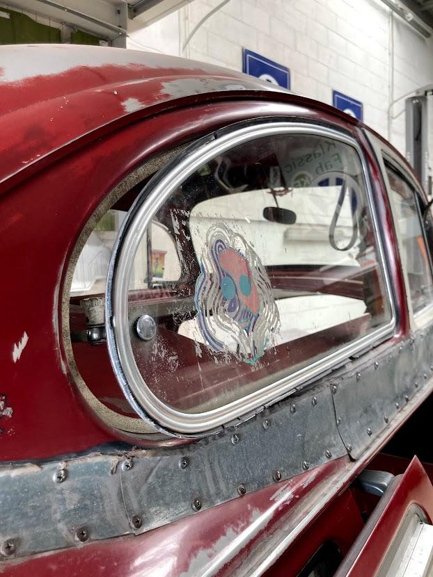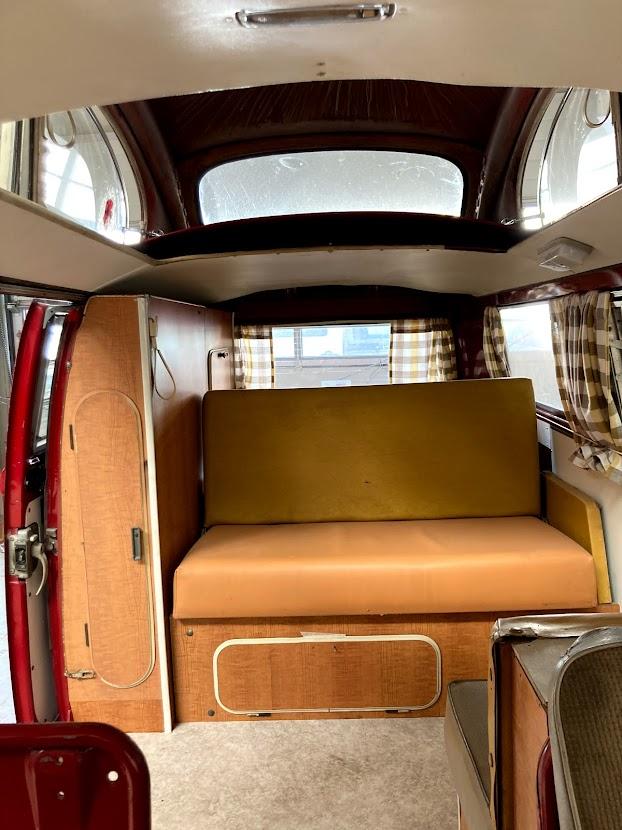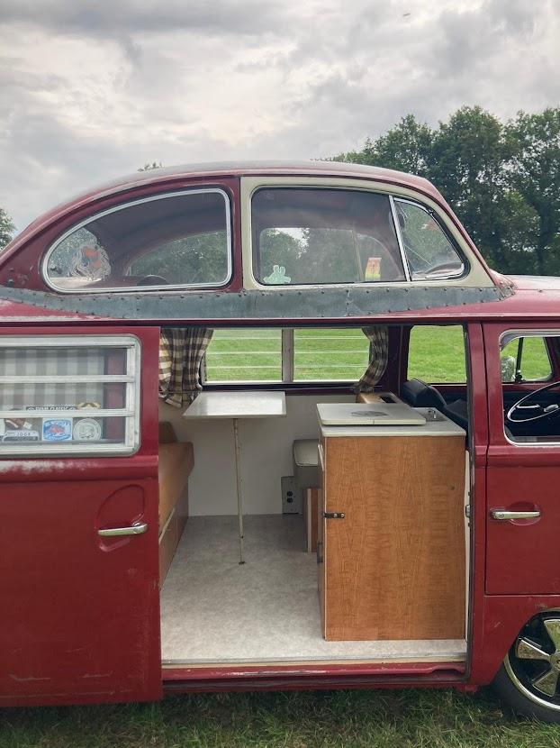This Bus has left the factory as a Westfalia Campervan but somewhere they take of the fiberglass westfalia roof top and put this amazing Beetle on top.