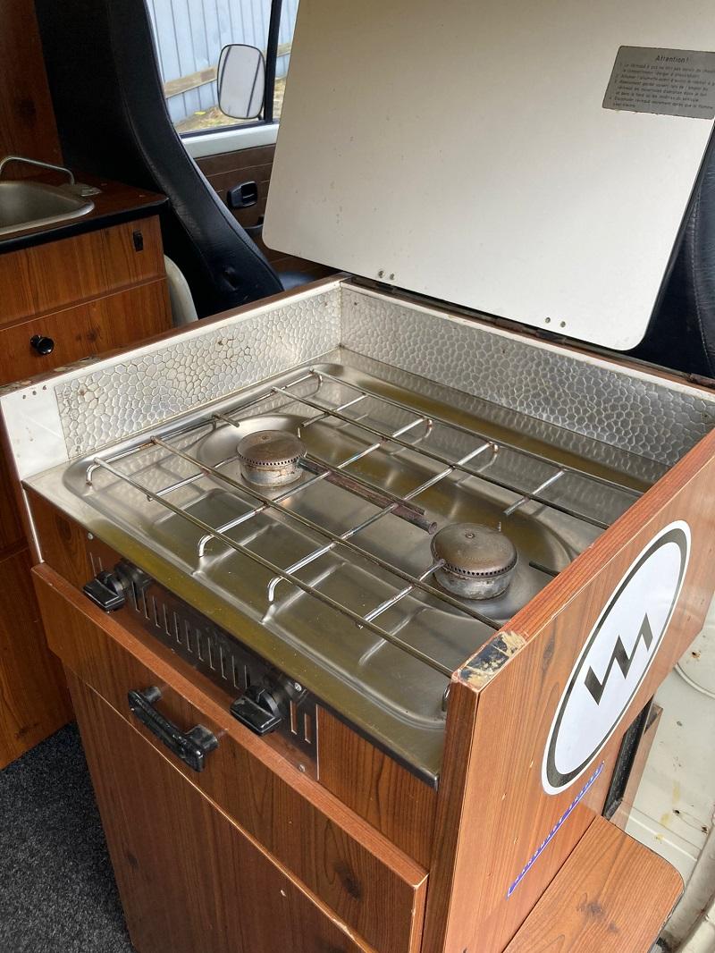 Intérieur très complet avec sièges avant Porsche 911 SC. Le robinet d'eau fonctionne et le réchaud à gaz fonctionne très bien, voir photos.